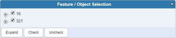 3. Click Check to select the assets related to the selected feature. Click Uncheck to clear the check boxes.