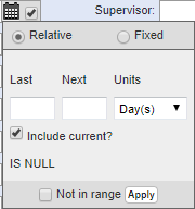 - Select Include current? to include the number you entered, or select Not in range if you want to exclude the numbers entered.